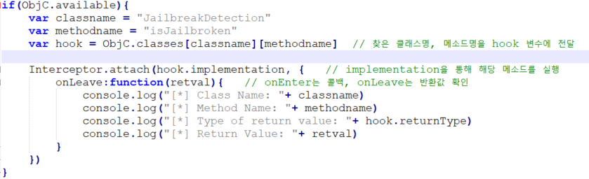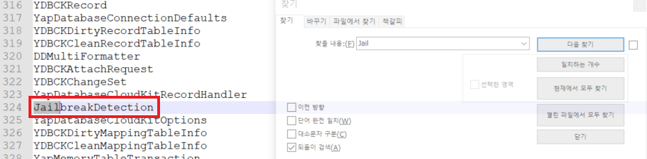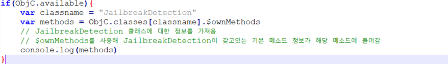 JailbreakDetection 클래스에서 사용하는 메소드를 확인하는 코드