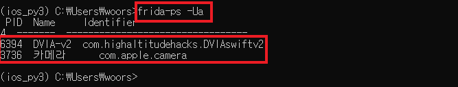 현재 연결된 기기에서 실행중인 앱의 프로세스 아이디, 앱이름, 식별자 확인 가능