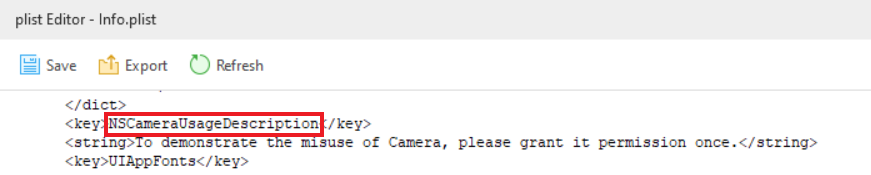 - 앱에 접근 권한이 필요하단 것을 알리기 위해 UsageDescription 키를 앱의 Info.plist 파일에 저장