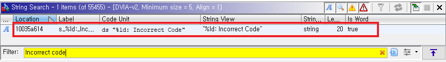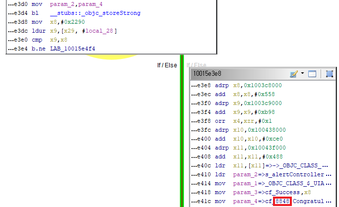 분기점에서 성공했을 때 출력되는 문자열 발견