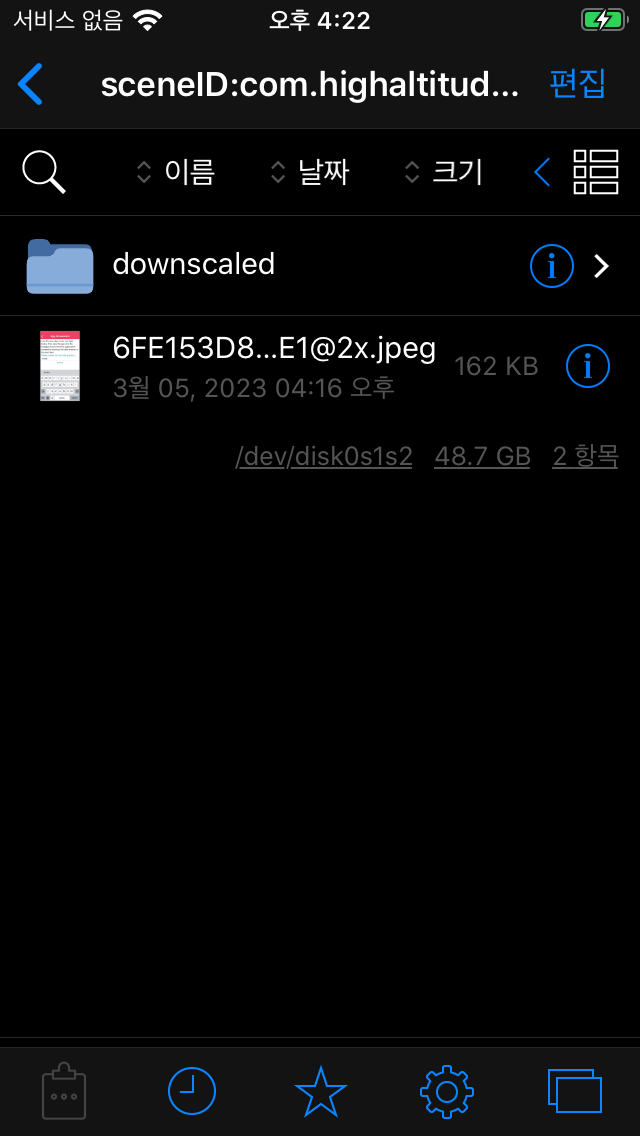 Filza 앱을 통해 스크린샷 확인 가능