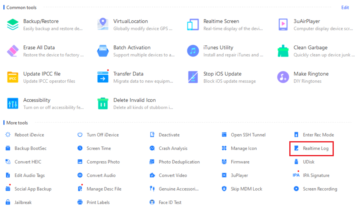 Realtime Log 기능을 이용해 로그 정보들을 실시간으로 확인 가능