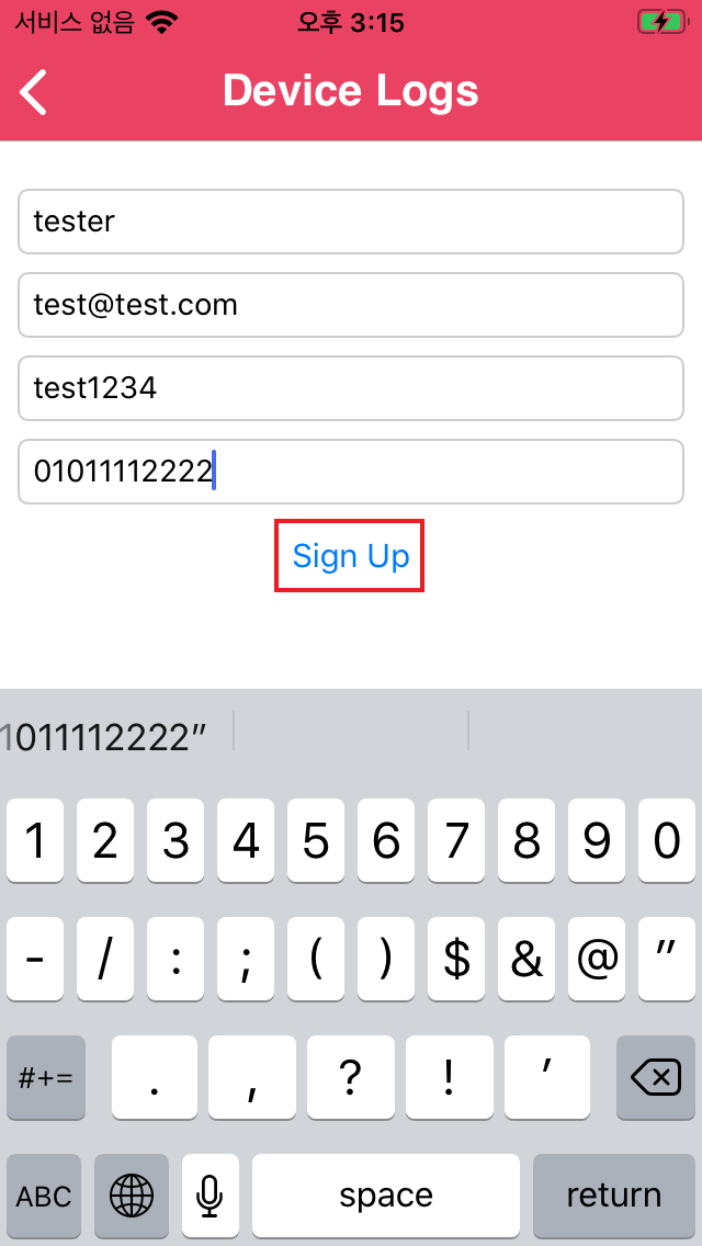 Sign Up을 클릭 시 앱이 종료되면서 기능 사용 불가