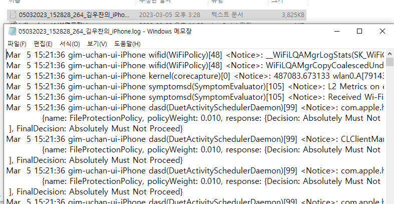 IOS 버전이 올라가면서 입력값에 대한 기록을 확인하기가 어려워졌지만 부분적으로 로그에 남는 부분이 있을 수 있기에 진단은 필요