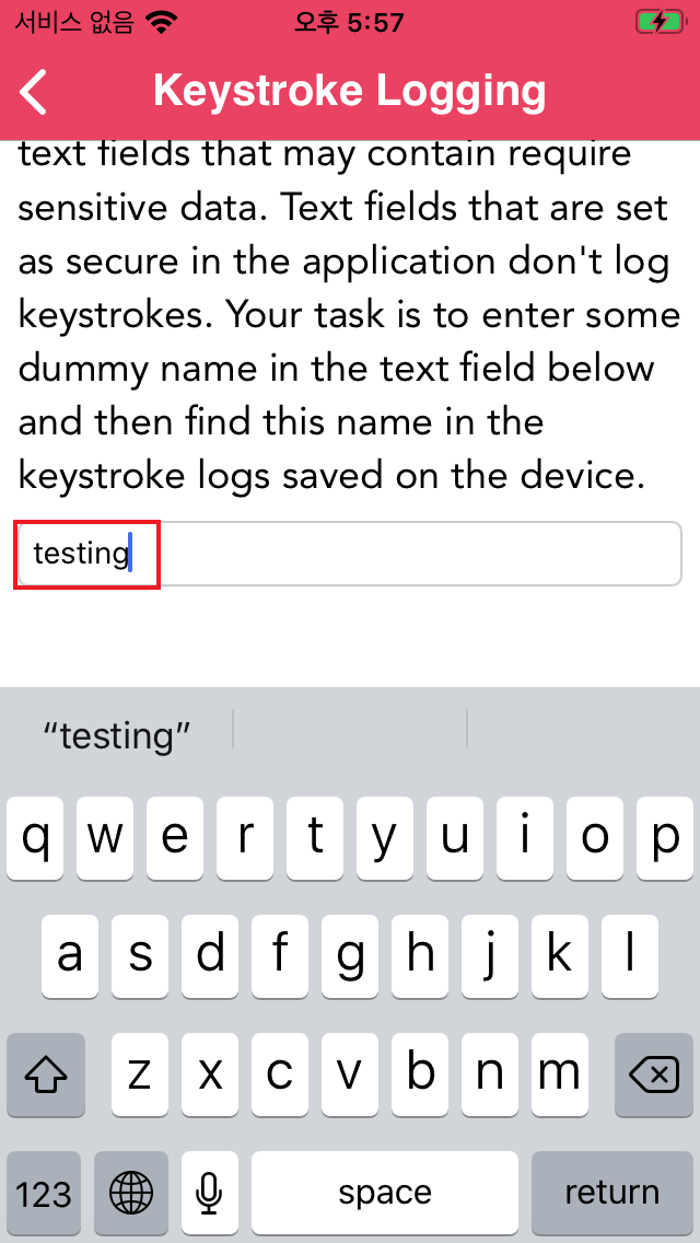 - 텍스트 필드가 Secure로 설정되지 않은 경우 기본적으로 디바이스의 텍스트 필드에 입력한 모든 입력을 기록함