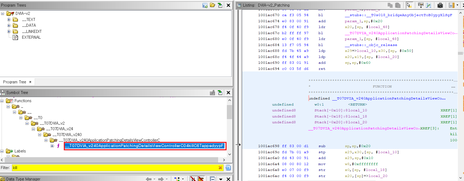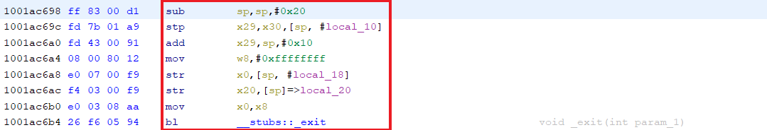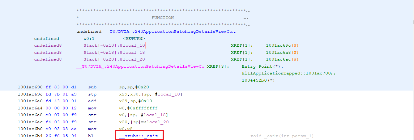 exit 해당 주소로 이동하면 해당 함수의 경우 앱을 종료하는 코드인 것으로 보임