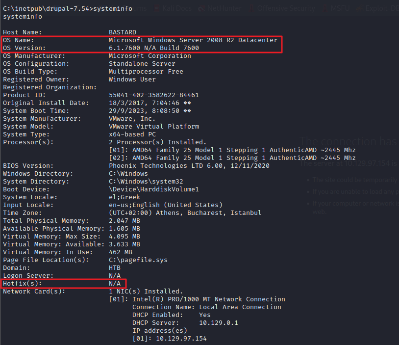 OS Version : 서비스팩이 없기 때문에 결과값이 N/A로 출력